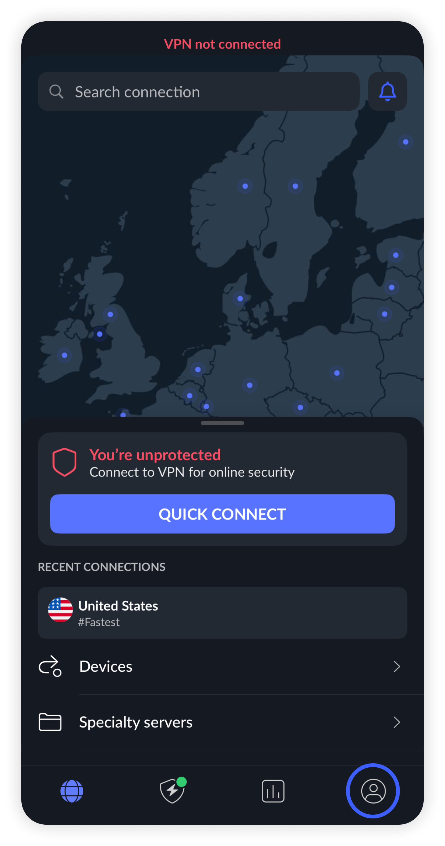 För att börja använda NordVPN på iPhone eller iPad behöver du ladda ner iOS-appen, logga in (eller registrera dig) och ansluta till en NordVPN-server. När din enhet har anslutit till våra servrar är enhetens internetanslutning privat och skyddad.