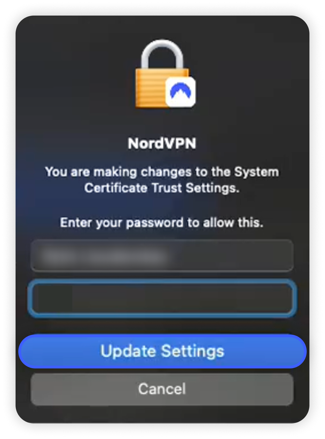 Öppna NordVPN-appen och klicka på sköldikonen längst upp till