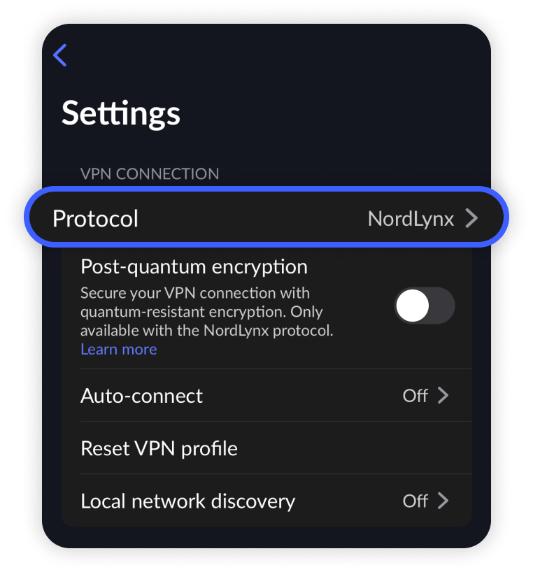 Du kan lägga till NordVPN:s DNS-servrar via appen så att de används när du är ansluten, vilket minskar risken för störningar från tredjepartsappar.