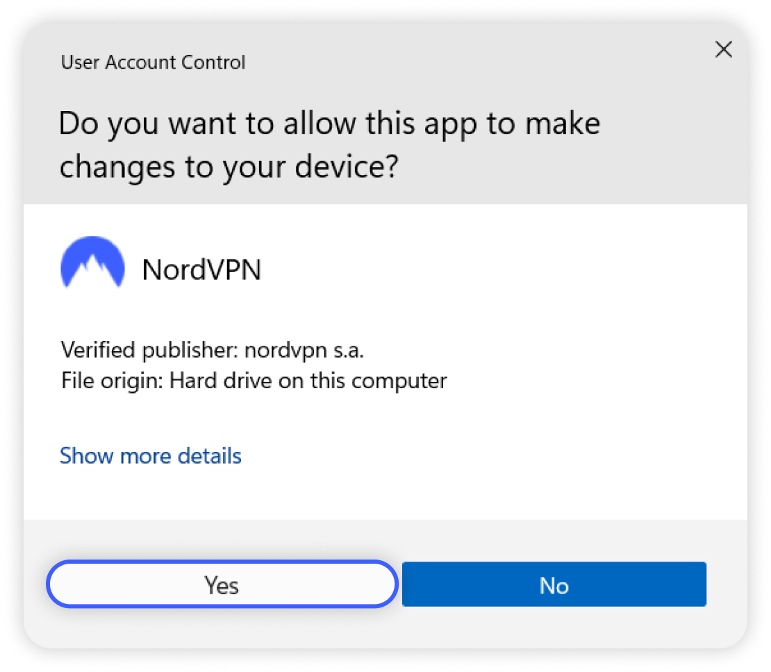 3. 螢幕上可能會出現視窗,詢問您是否同意應用程式變更裝置。 點選「確定 (Yes)」