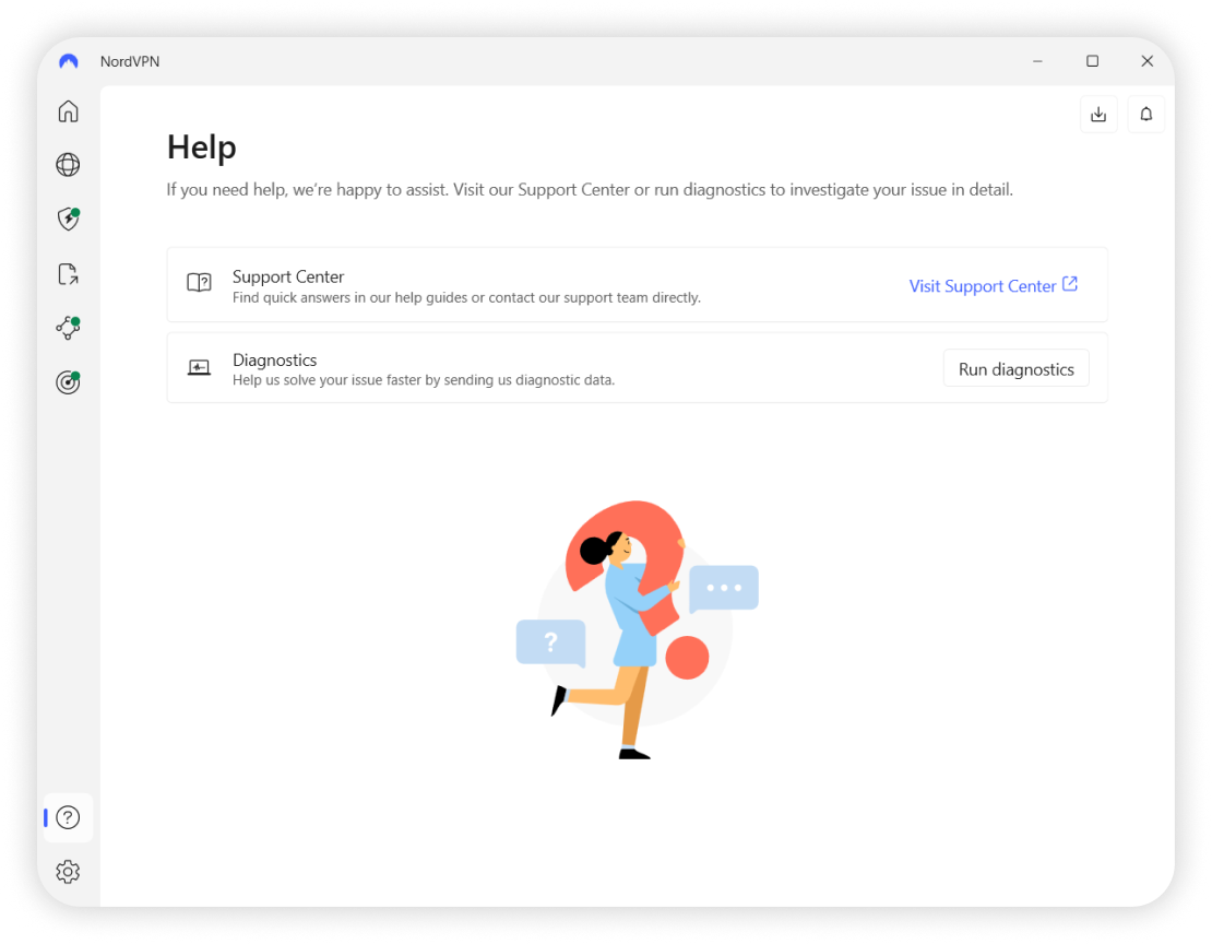 • 蒐集診斷資訊,提供給 NordVPN 客服進行疑難排解。