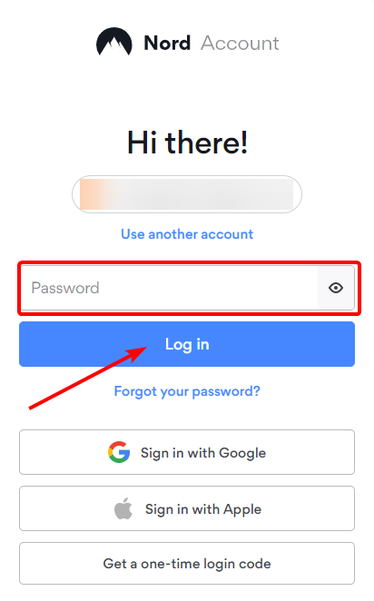 輸入已註冊的 NordVPN 電子郵件地址和密碼,然後點選「登入 (Log in)」。