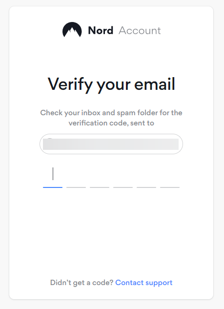2. You will receive a verification code in your email that you use for NordVPN services. Type the code in: